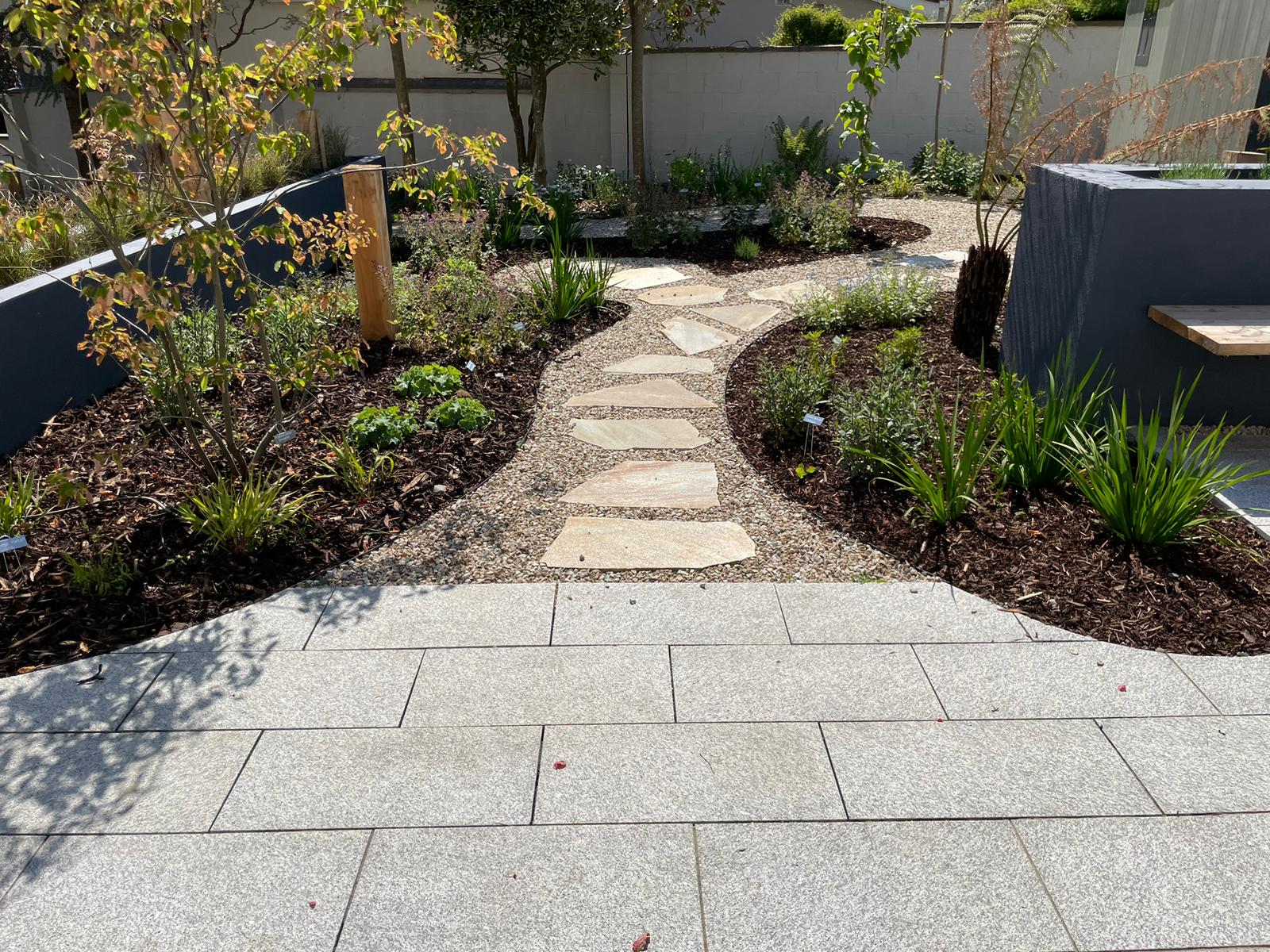 This landscape construction in Bray combined striking planting schemes with a variety of hardscape materials. Each garden space flows into the next, designed with both form and functionality in mind. The outcome is a landscape that is stunning in appearance while also serving the client’s daily needs.